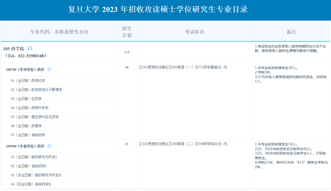 复旦大学考研辅导班:2023年复旦大学药学院考研专业目录