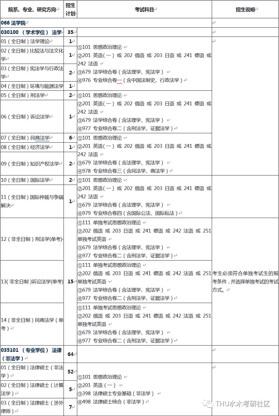 2023年清华大学法学院硕士研究生招生专业目录、招生人数