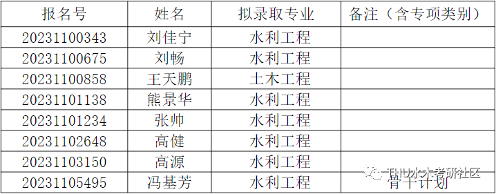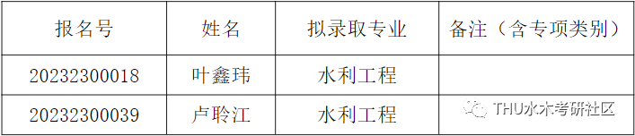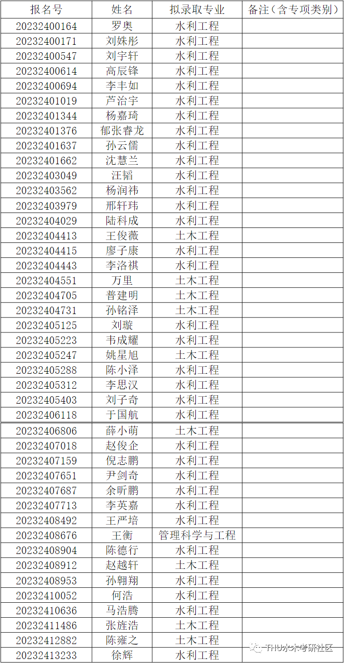 经综合考核和研究生招生工作领导小组讨论,报学校研究生招生工作领导小组批准,清华大学水利水电工程系2023年硕博连读博士研究生拟录取名单,现已确定,现予以公示。