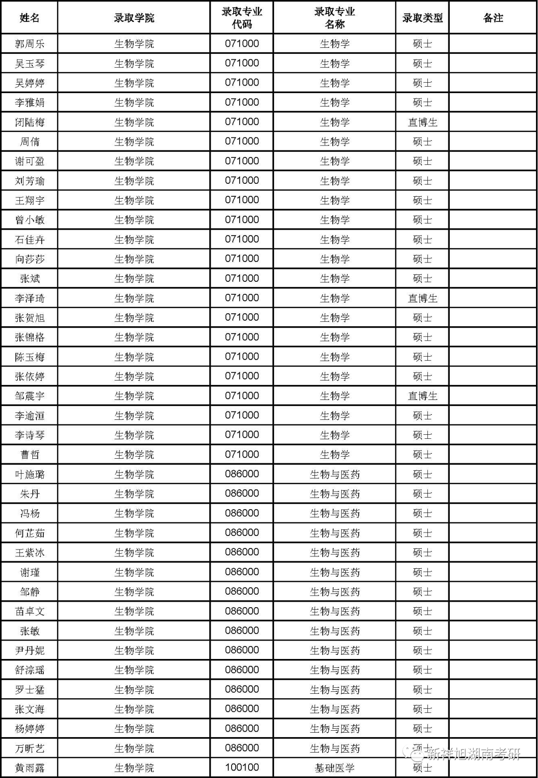 2023年湖南大学生物学院拟录取推荐免试研究生名单公示