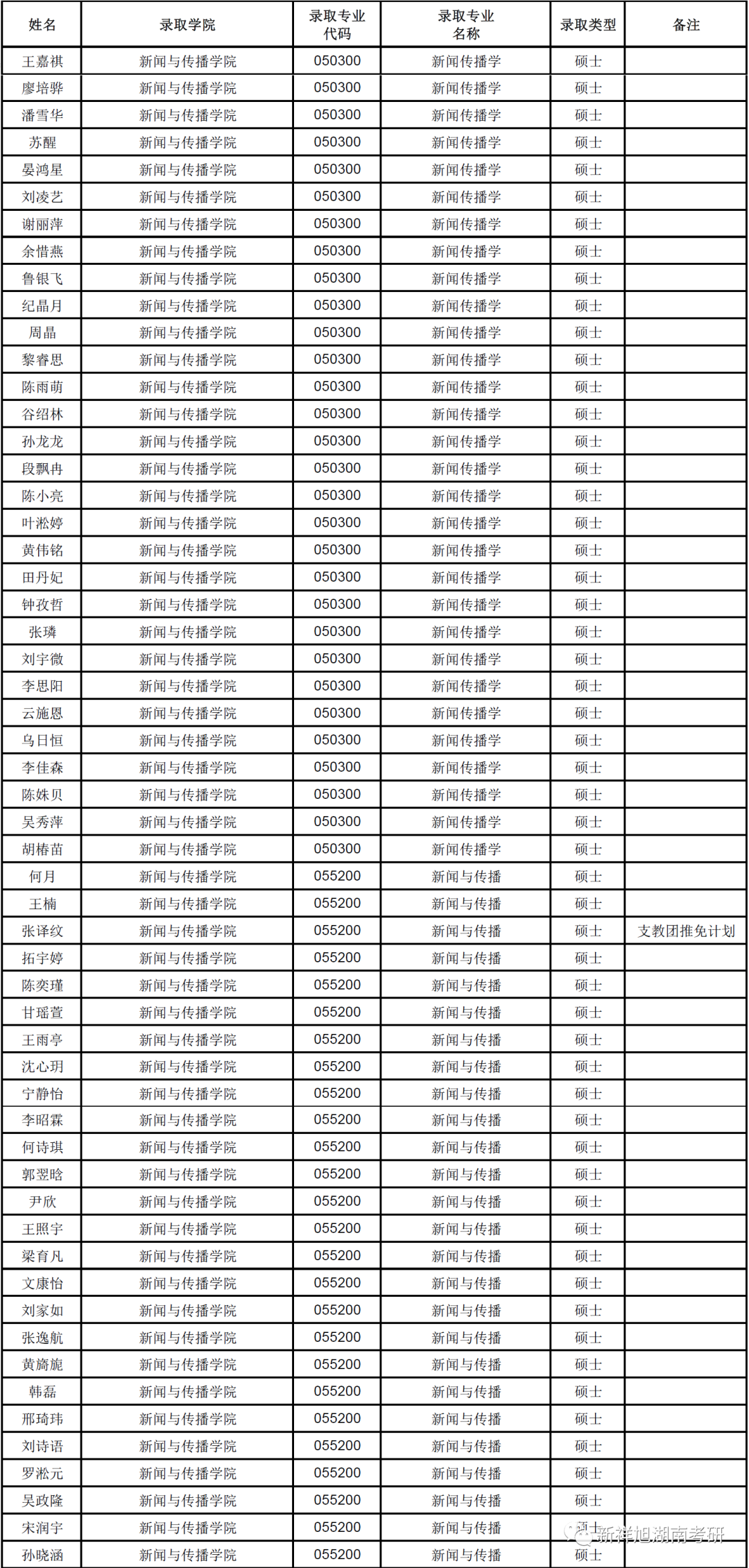 2023年湖南大学新闻与传播学院拟录取推荐免试研究生名单公示