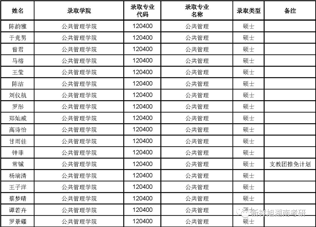 2023年湖南大学公共管理学院拟录取推荐免试研究生名单公示