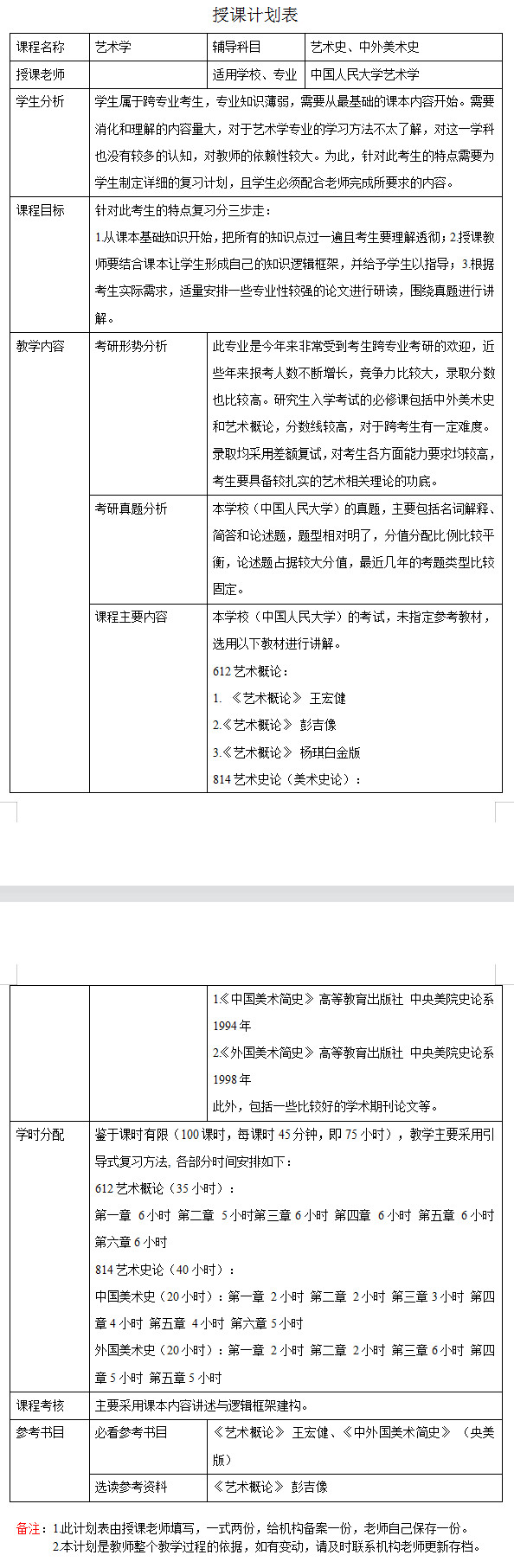 新祥旭考研一对一:2023年中国人民大学艺术学考研一对一辅导授课计划