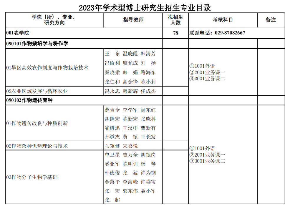 新祥旭考研:西北农林科技大学2023年农学院博士研究生招生专业目录