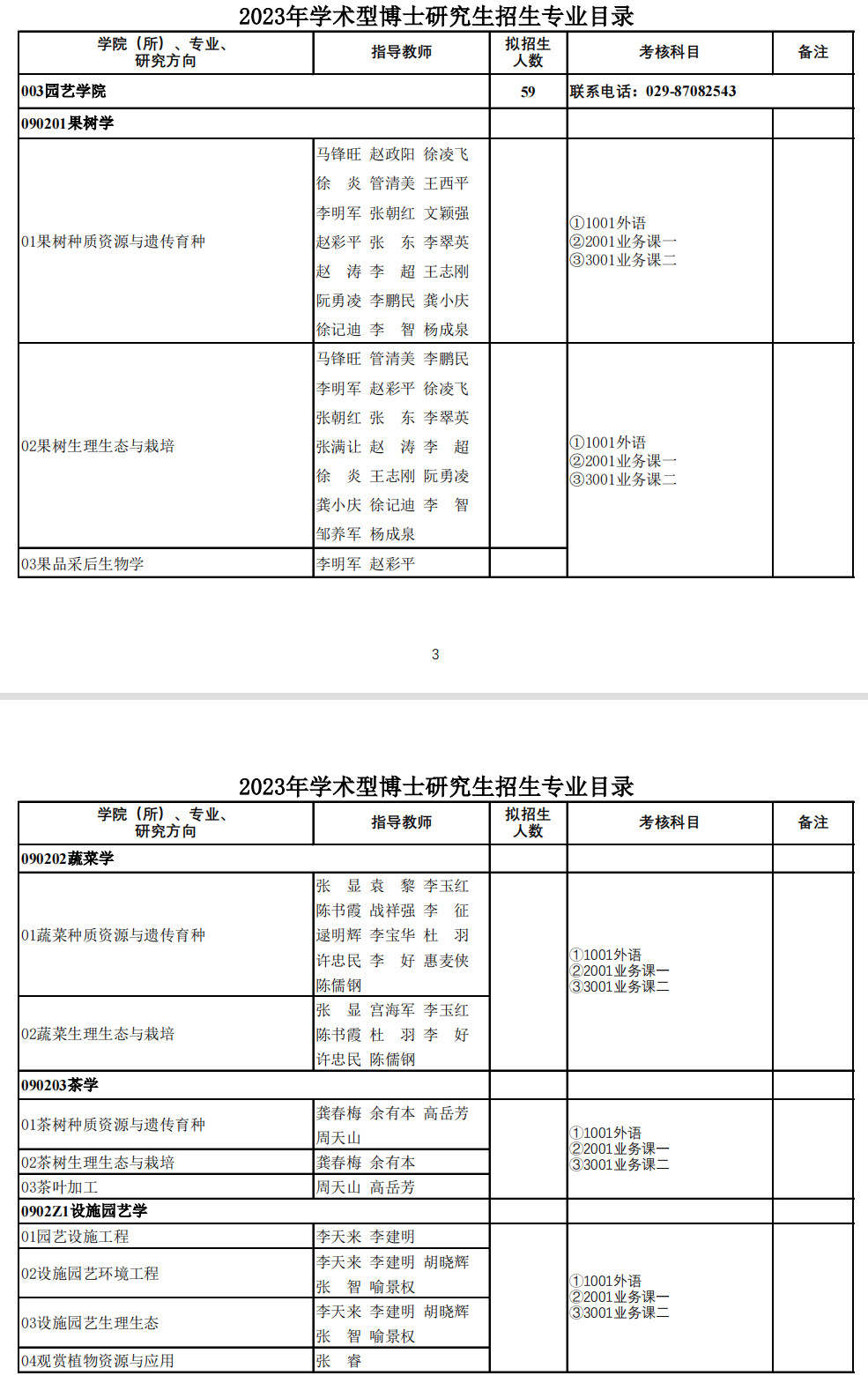 新祥旭考研:西北农林科技大学2023年园艺学院博士研究生招生专业目录