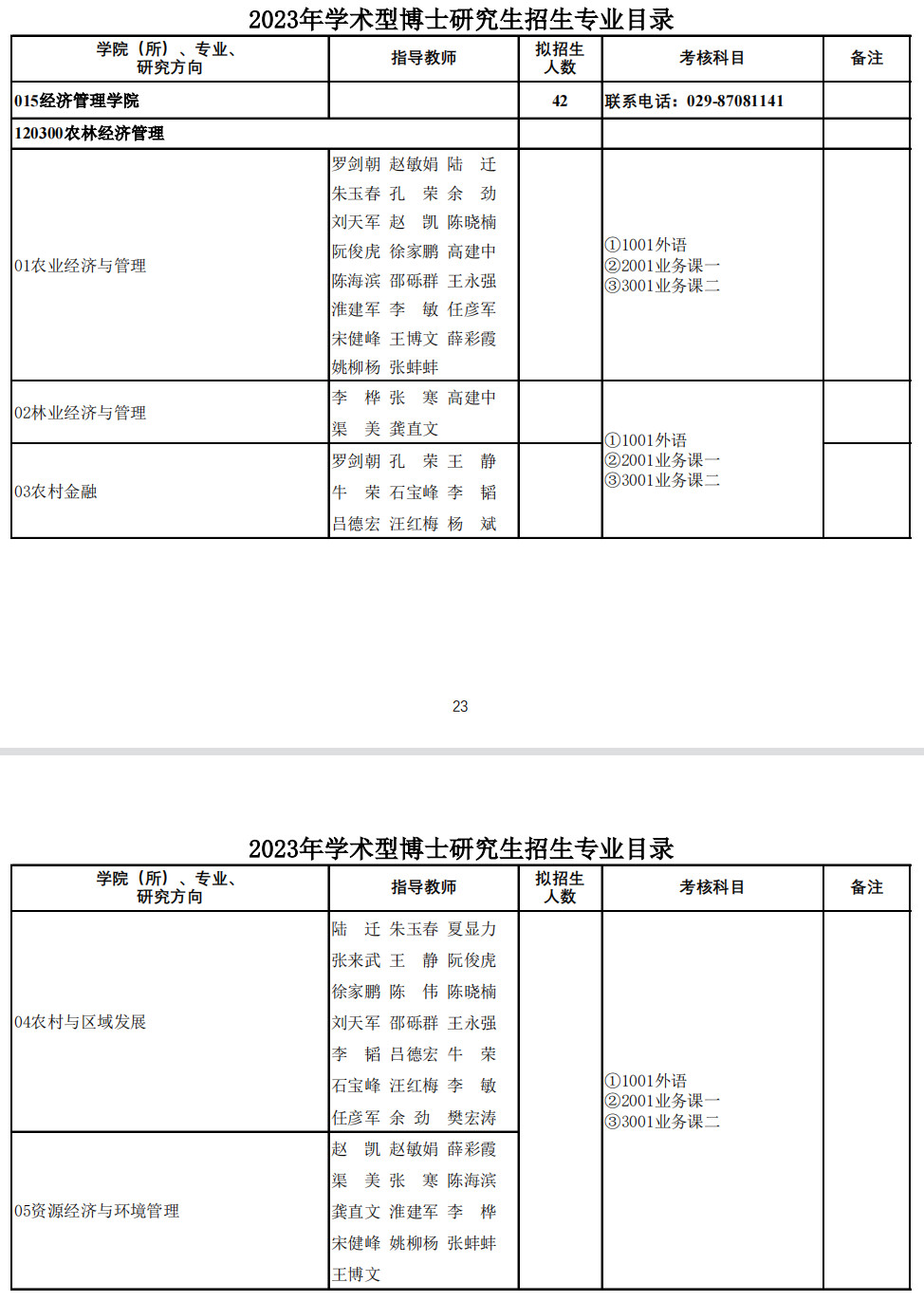 新祥旭考研:西北农林科技大学2023年经济管理学院博士研究生招生专业目录