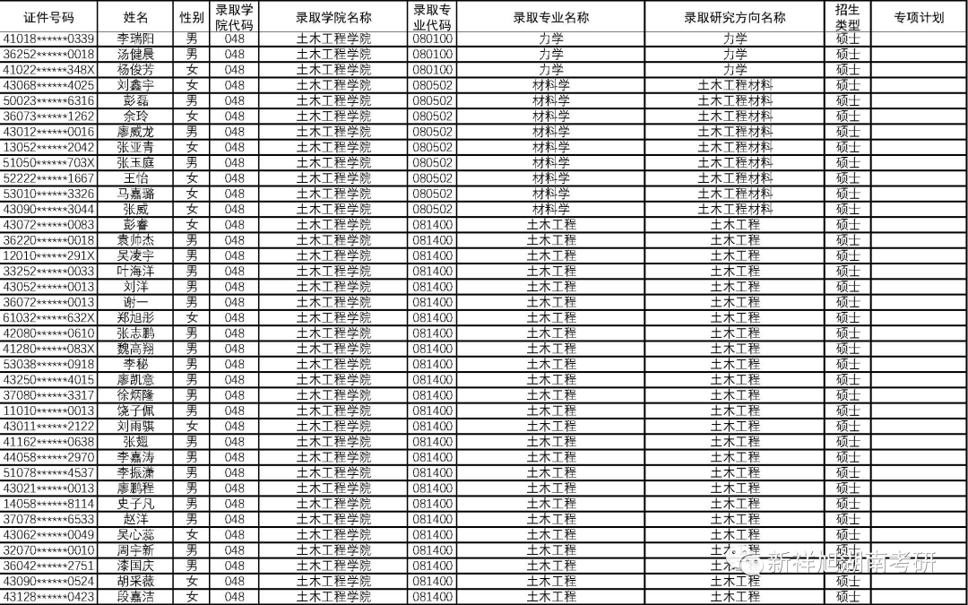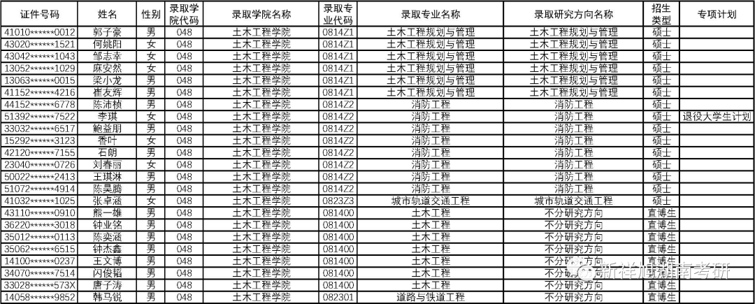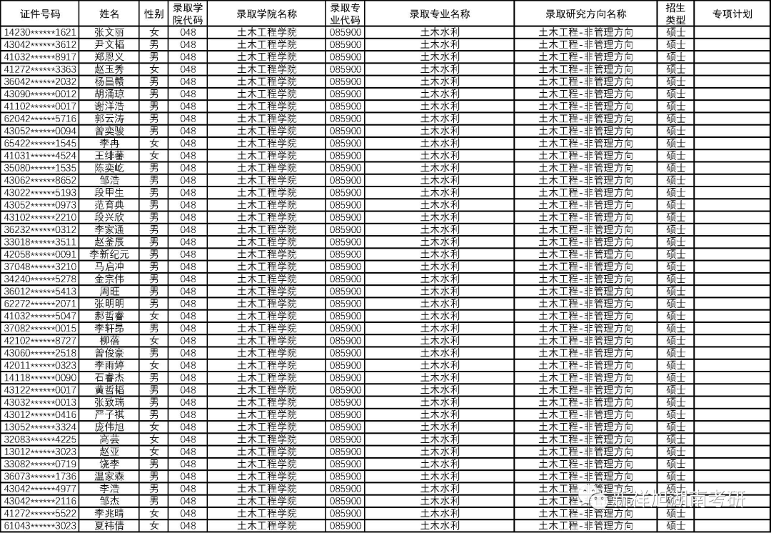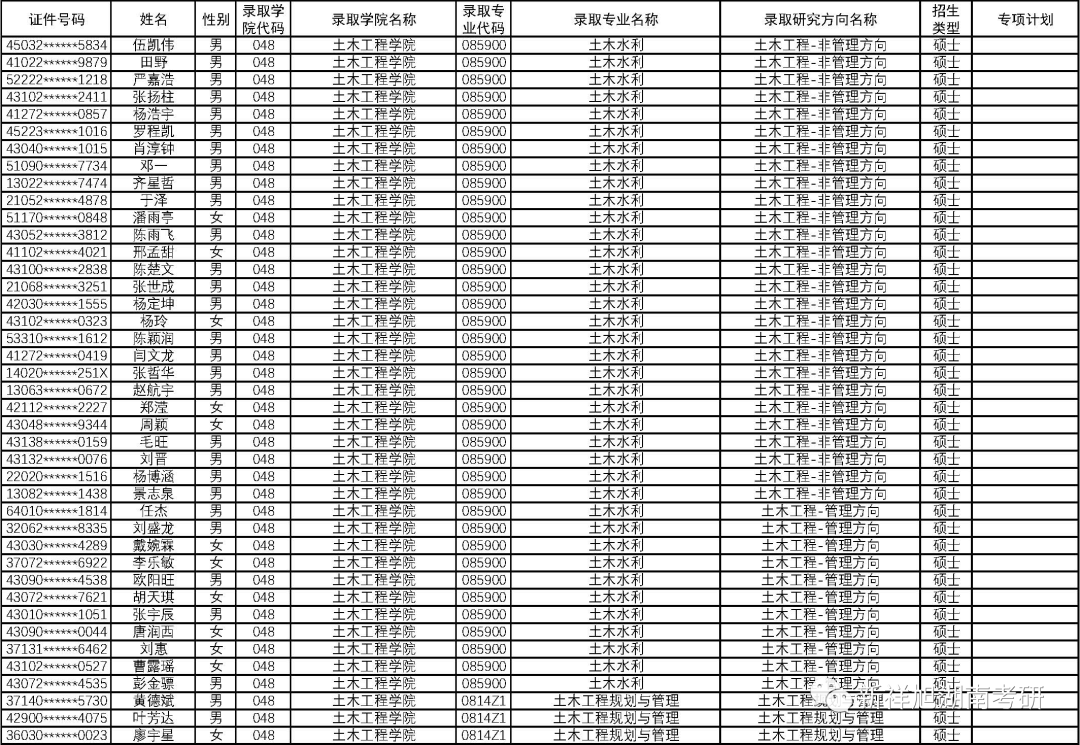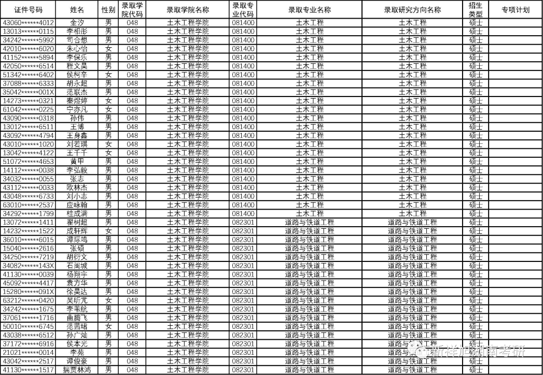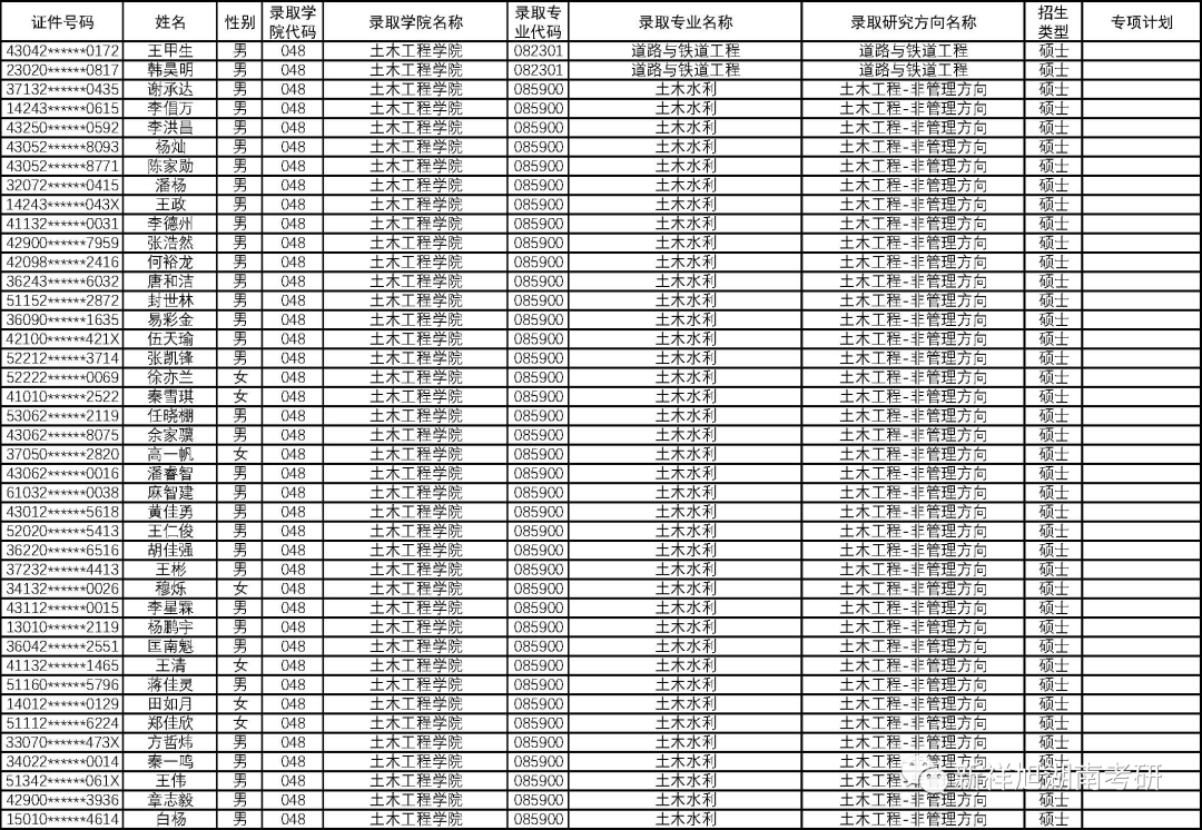 2023年中南大学土木工程学院拟录取推荐免试研究生名单公示