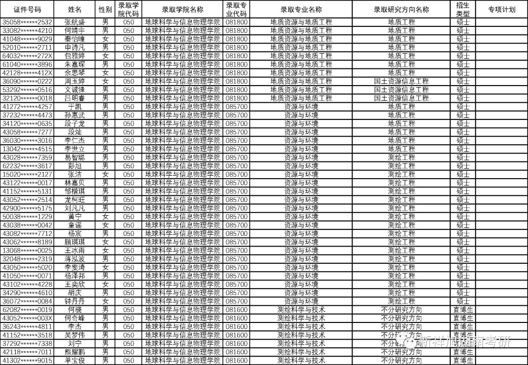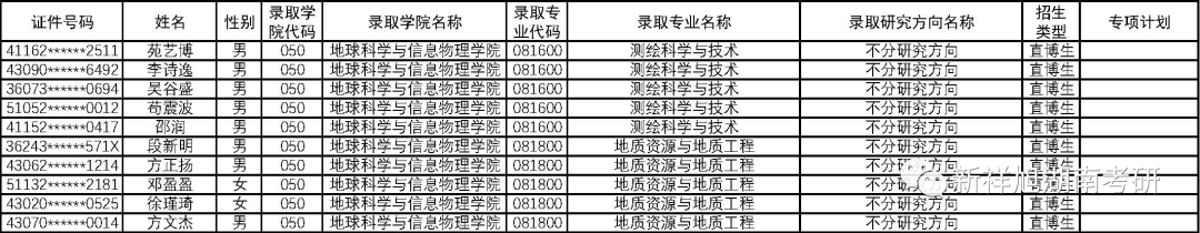 2023年中南大学地球科学与信息物理学院拟录取推荐免试研究生名单公示