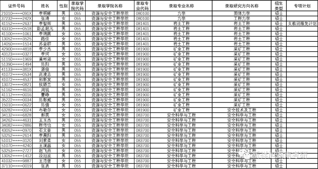 2023年中南大学资源与安全工程学院拟录取推荐免试研究生名单公示