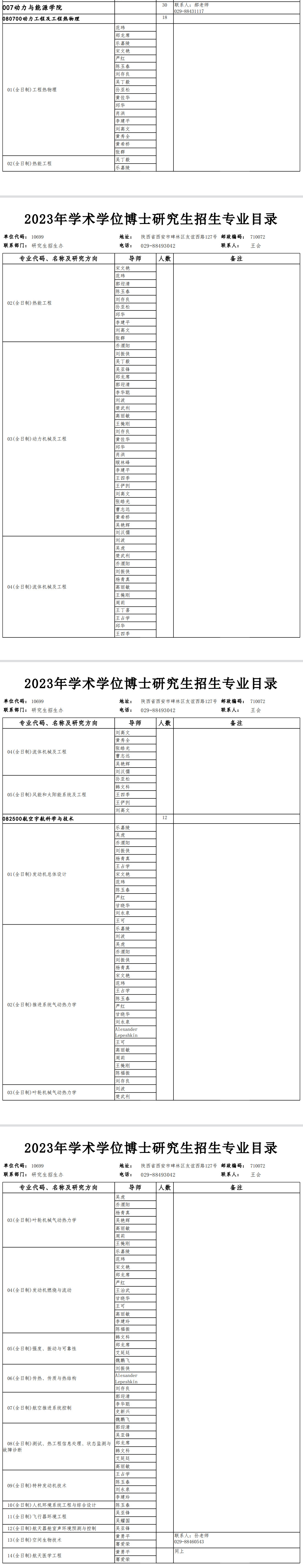 西北工业大学2023年动力与能源学院学术型博士研究生招生专业目录