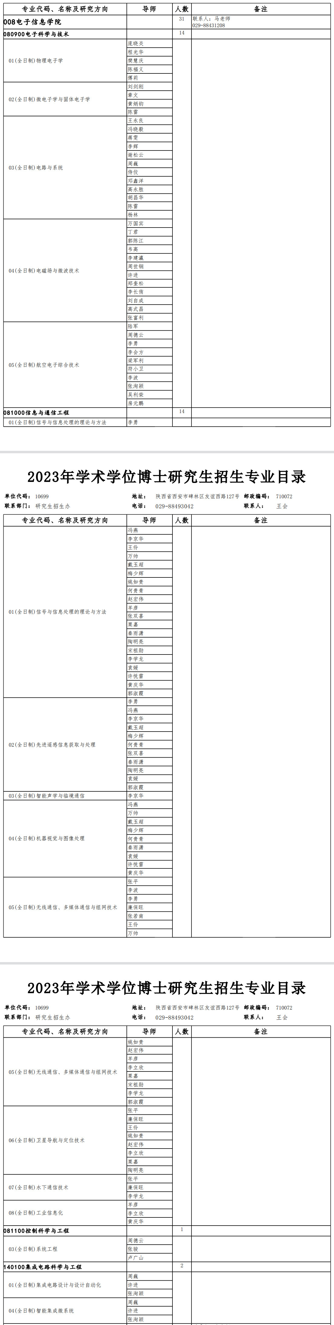 西北工业大学2023年电子信息学院学术型博士研究生招生专业目录