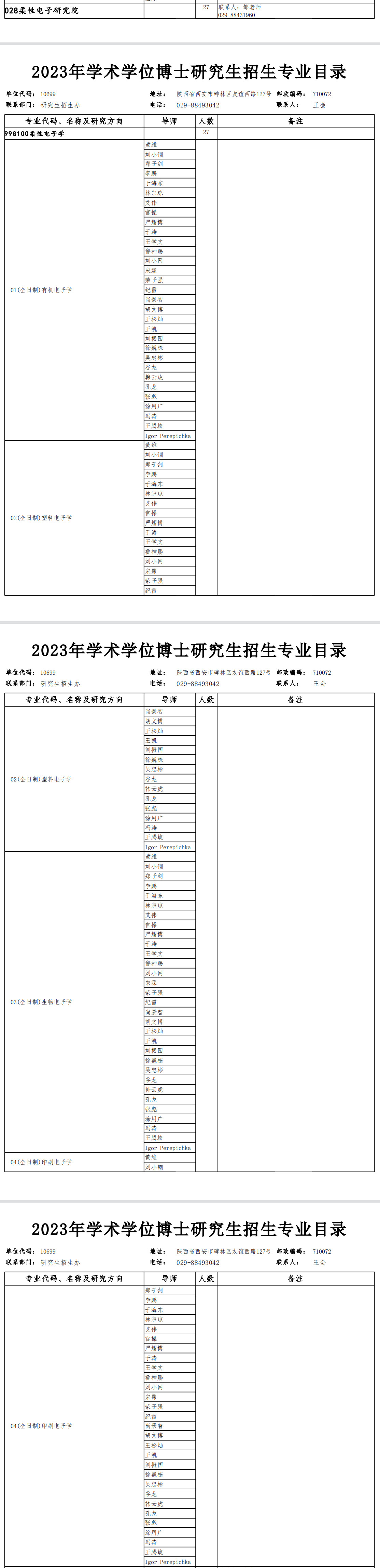 西北工业大学2023年柔性电子研究院学术型博士研究生招生专业目录