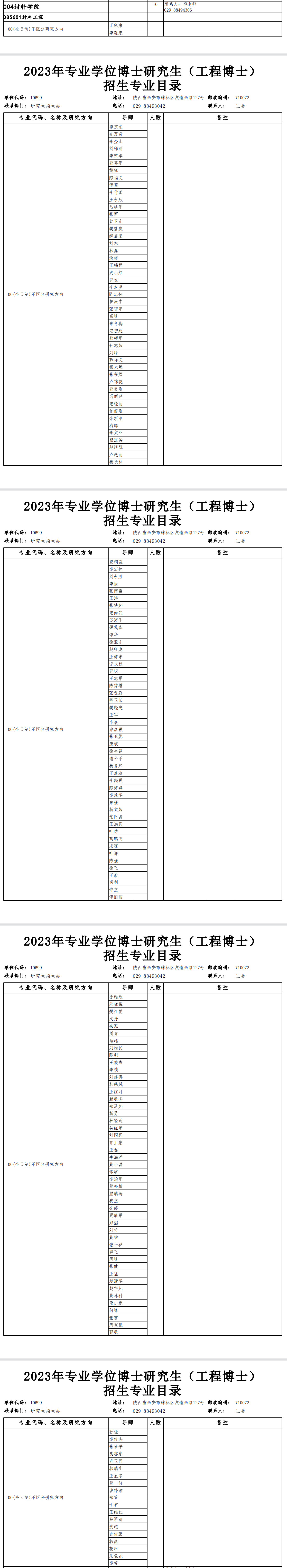 西北工业大学2023年材料学院专业学位博士研究生招生专业目录