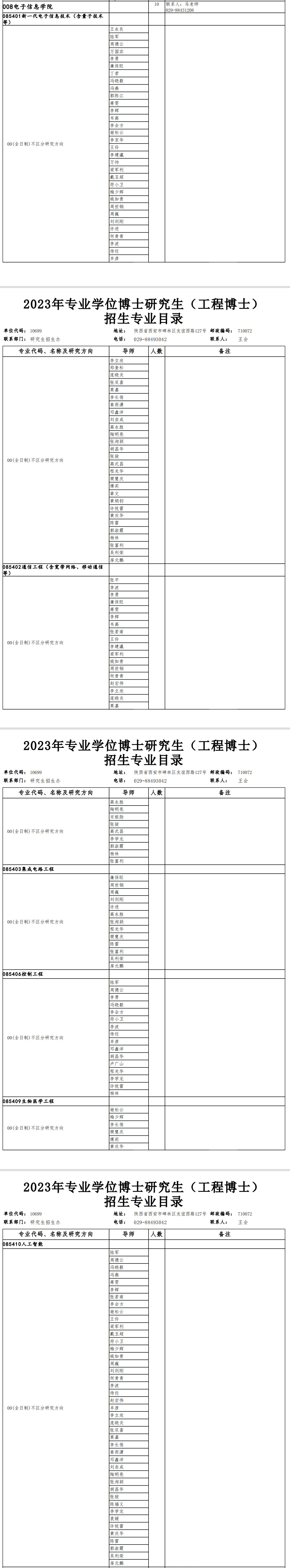 西北工业大学2023年电子信息学院专业学位博士研究生招生专业目录