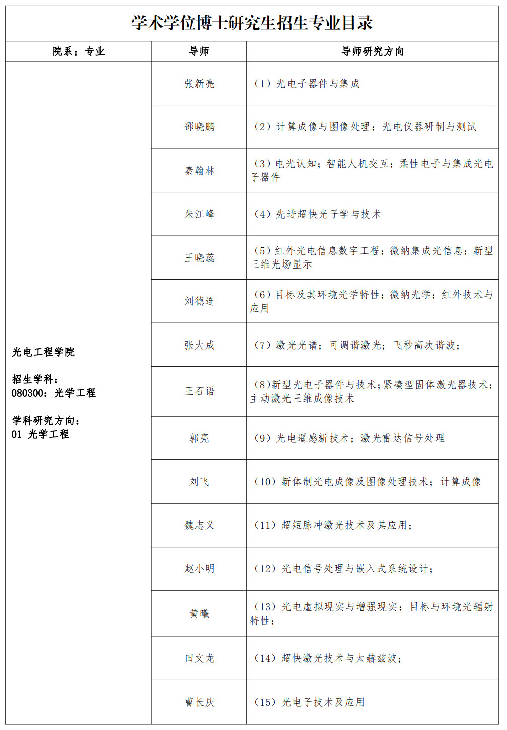 西安电子科技大学2023年光电工程学院学术学位博士研究生招生专业目录