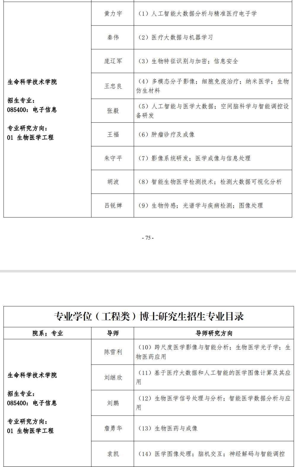 西安电子科技大学2023年生命科学技术学院专业学位博士研究生招生专业目录