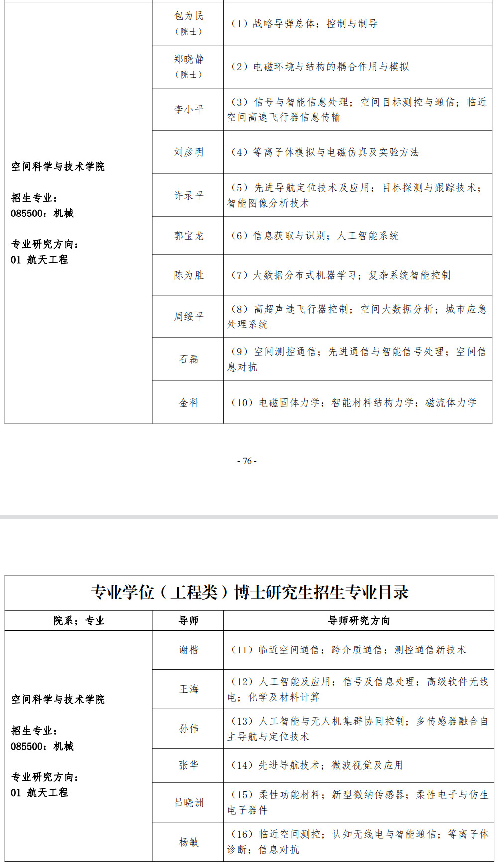 西安电子科技大学2023年空间科学与技术学院专业学位博士研究生招生专业目录