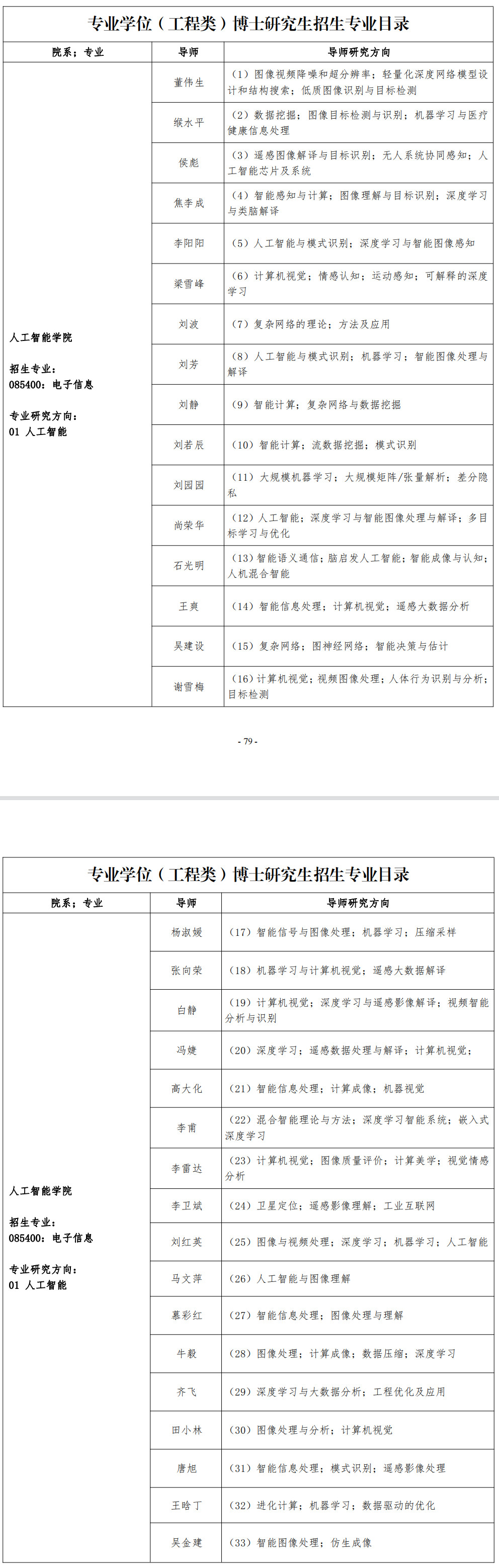 西安电子科技大学2023年人工智能学院专业学位博士研究生招生专业目录