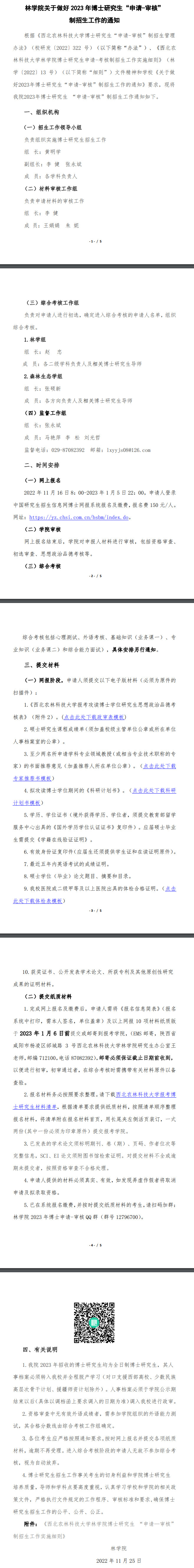 西北农林科技大学林学院2023年博士研究生“申请-审核”制招生工作细则