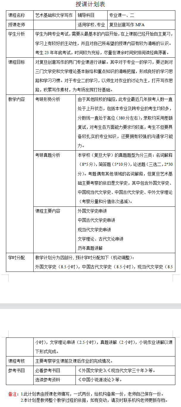 复旦大学考研辅导班:2024年复旦大学创意写作考研一对一辅导授课计划