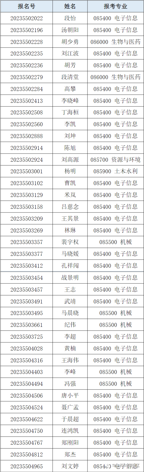 清华大学2023年创新领军工程博士集成电路项目招收公开招考博士研究生入围综合考核的名单已确定,现公布如下: