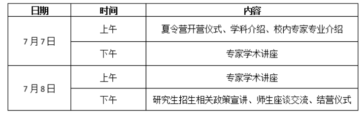 2022年的夏令营是7月7日和7月8日两天,由于疫情原因都是在线上开展。下面的表格是这两天的具体活动安排。