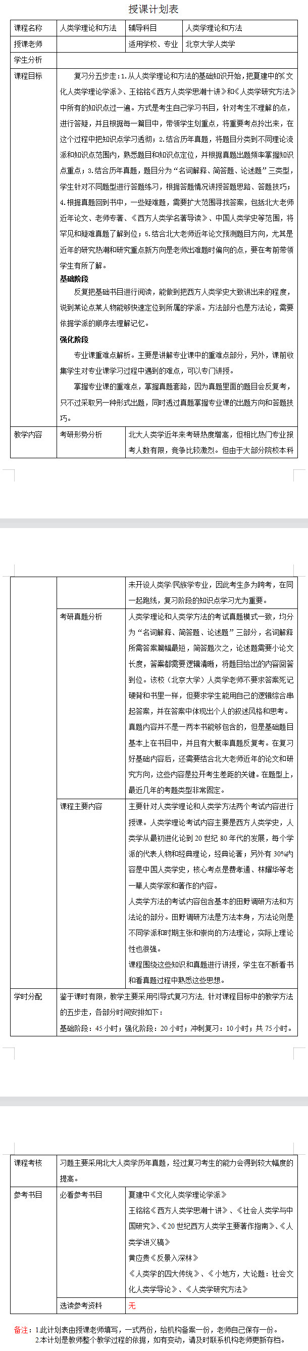 北京大学考研辅导班:2024年北京大学人类学专业考研一对一辅导授课计划