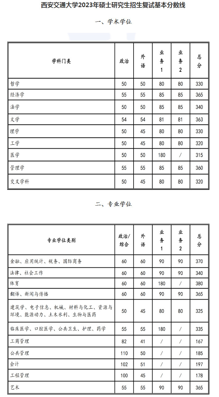1.学校复试基本分数线为相应学科门类(学科)、专业学位类别的最低分数线,单科、总分须同时满足要求。各招生学院(部、中心)可根据其招生计划和生源等情况,按一定的差额复试比例划定本单位复试分数线并确定复试考生名单。