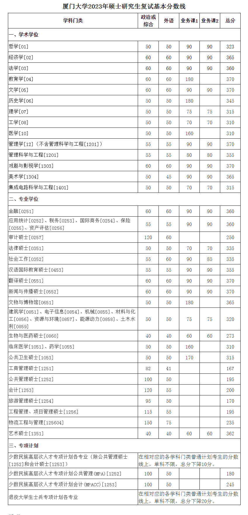 3.具体复试工作安排请关注厦门大学招生网、厦大招生微信公众号公告和各招生院系官网。
