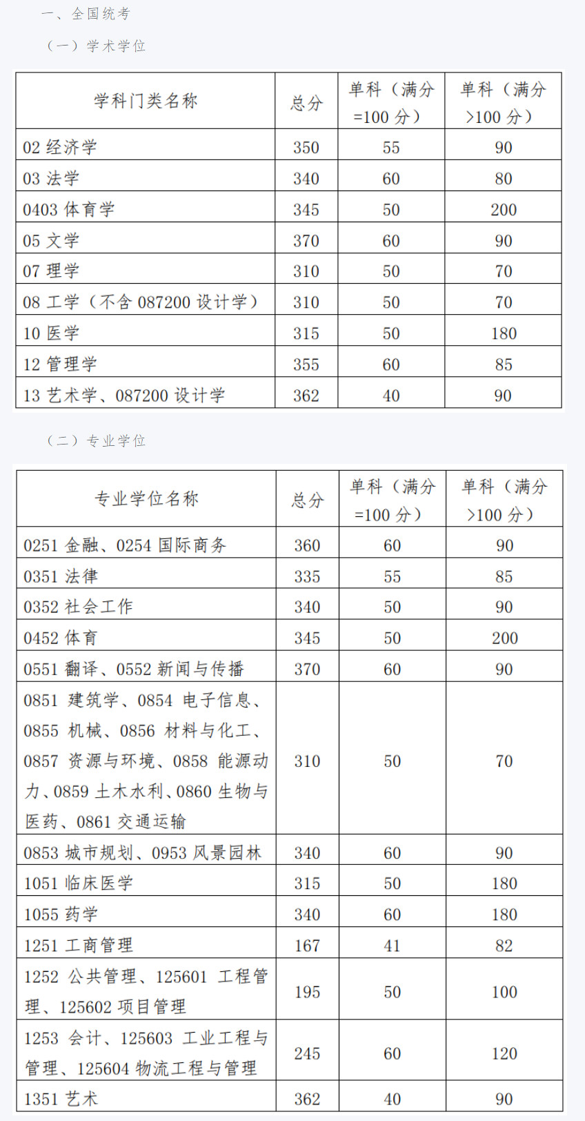 报考“退役大学生士兵”计划的考生,初试总分不低于251分(初试满分300分制的专业折算成500分制),按照考生总分与所报考学科学校复试线的差值排序,由高到低通知复试。