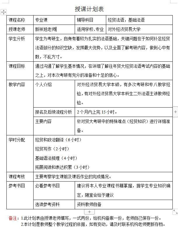 新祥旭考研:2024年对外经济贸易大学法语语言文学考研一对一辅导授课计划