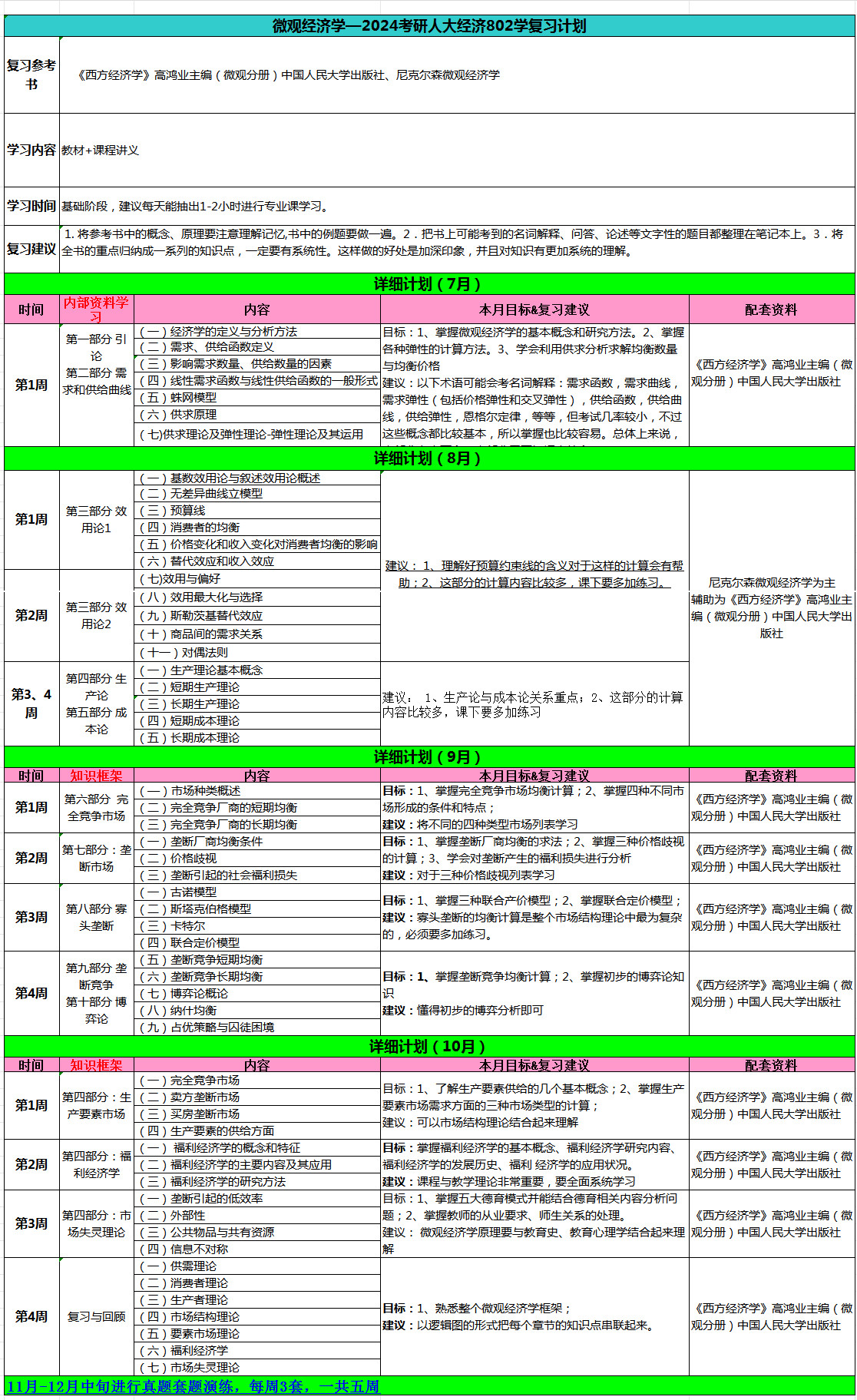 新祥旭考研:2024年中国人民大学802经济学综合考研一对一辅导授课计划