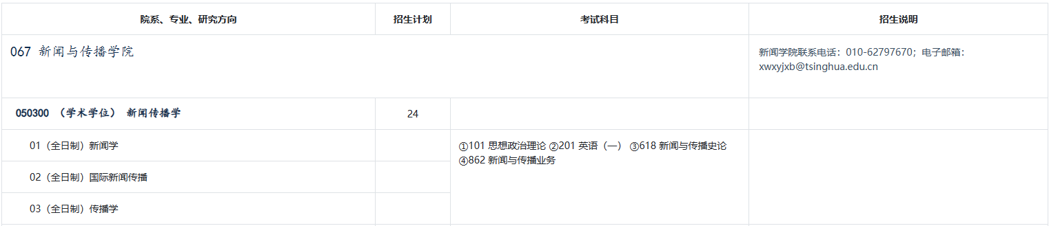 四、清华大学新闻传播学考研招生目录(参考2023年)