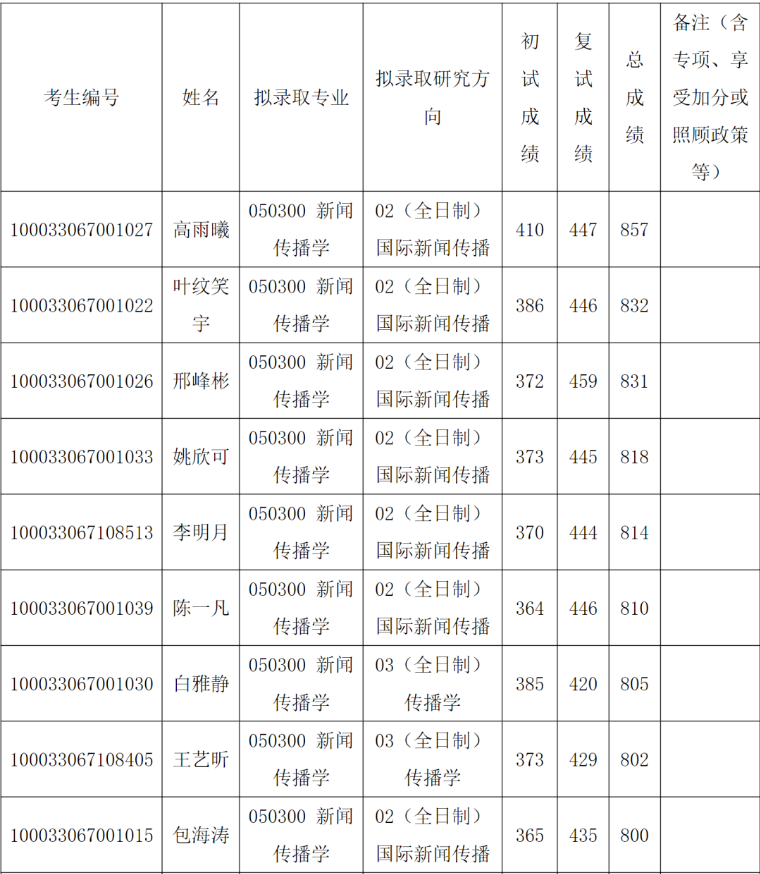 经综合考核和研究生招生工作领导小组讨论,报学校研究生招生工作领导小组批准,清华大学2023年新闻与传播学院硕士研究生拟录取名单已确定,现予以公示。