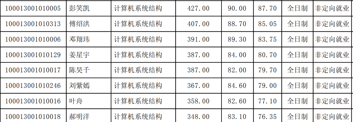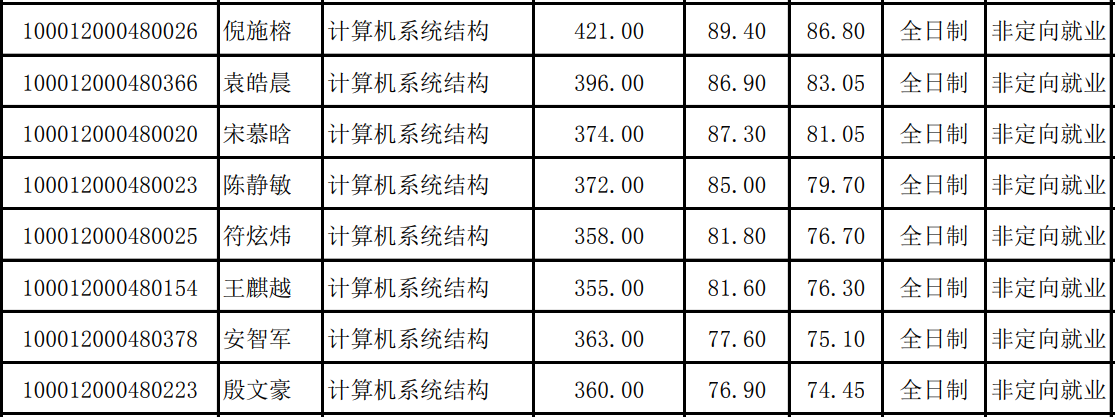 由录取名单可知录取最低分数线是348分,由于北大复试占比也比较大所以复试逆袭的机会存在,但是为了求稳初试分数最好能考到370分左右这样比较稳