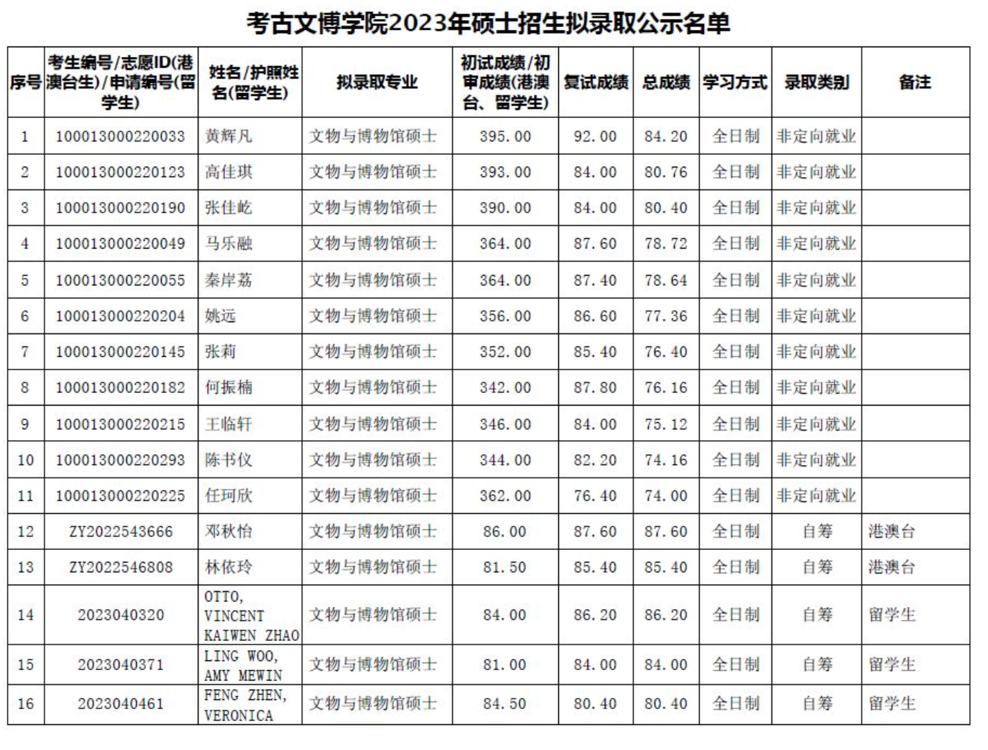 2023录取名单