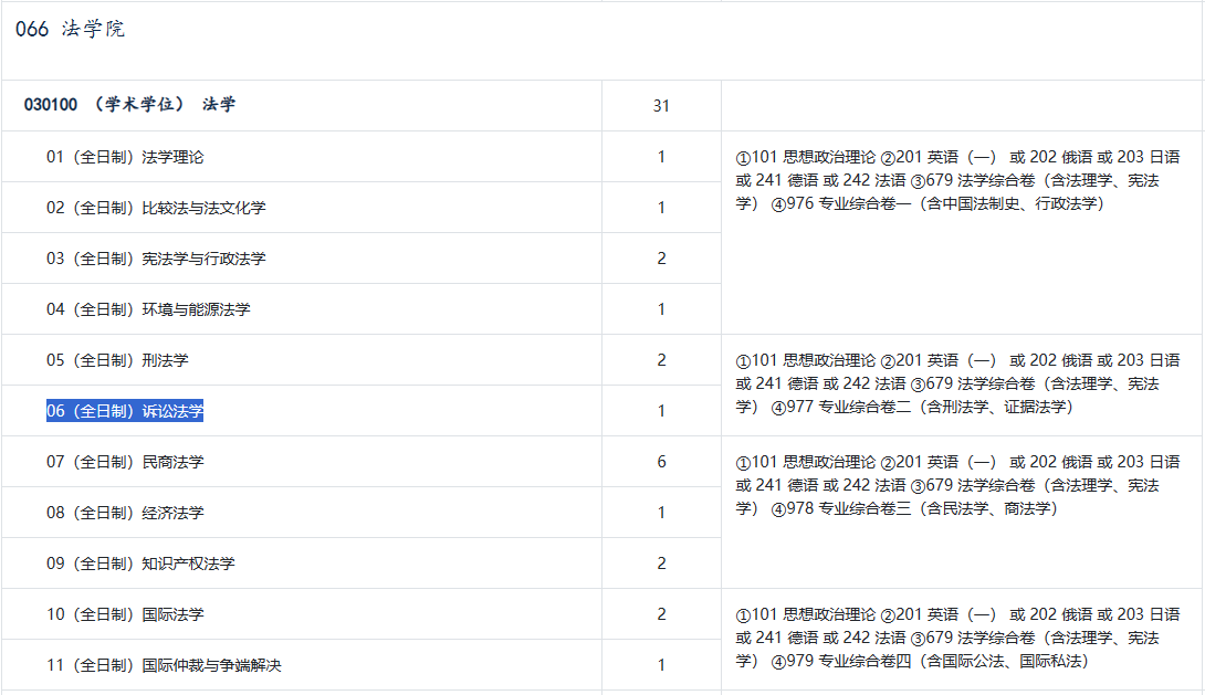 一、2024年清华大学法学院诉讼法学考研招生目录