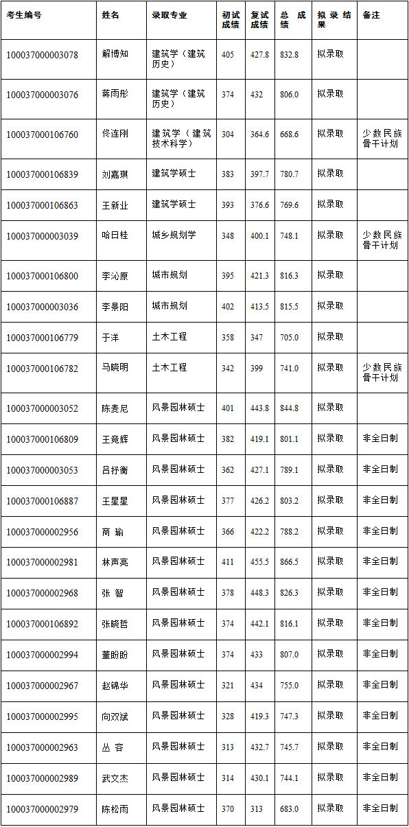 2017年建筑学院硕士生拟录取名单公示