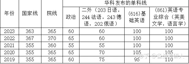 从这个表中,可以看出要想进入复试,那就不能偏科。政治60以上、二外70以上、基础英语100分以上、英语专业综合100分以上是进入复试的基本要求。