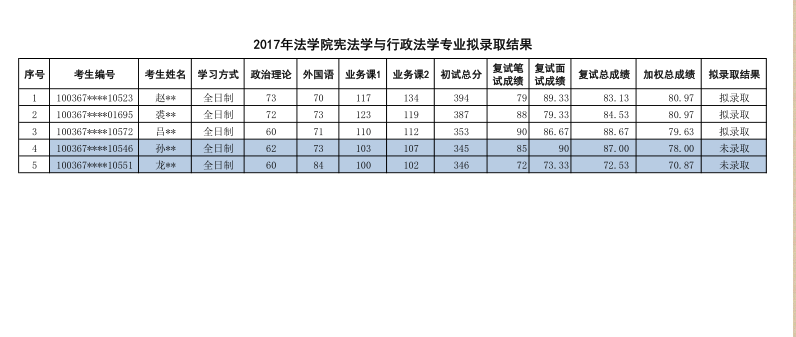 2017年对外经济贸易大学宪法学与行政法学研究生拟录取名单
