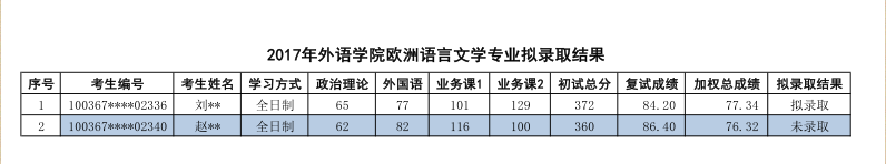 2017年对外经济贸易大学欧洲语言文学(意大利语)研究生拟录取名单