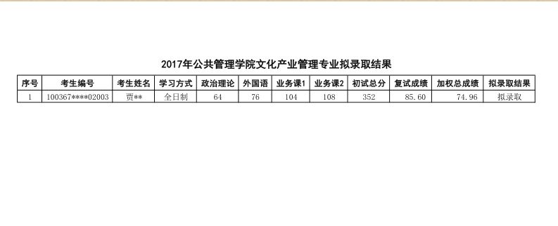 2017年对外经济贸易大学文化产业管理研究生拟录取名单