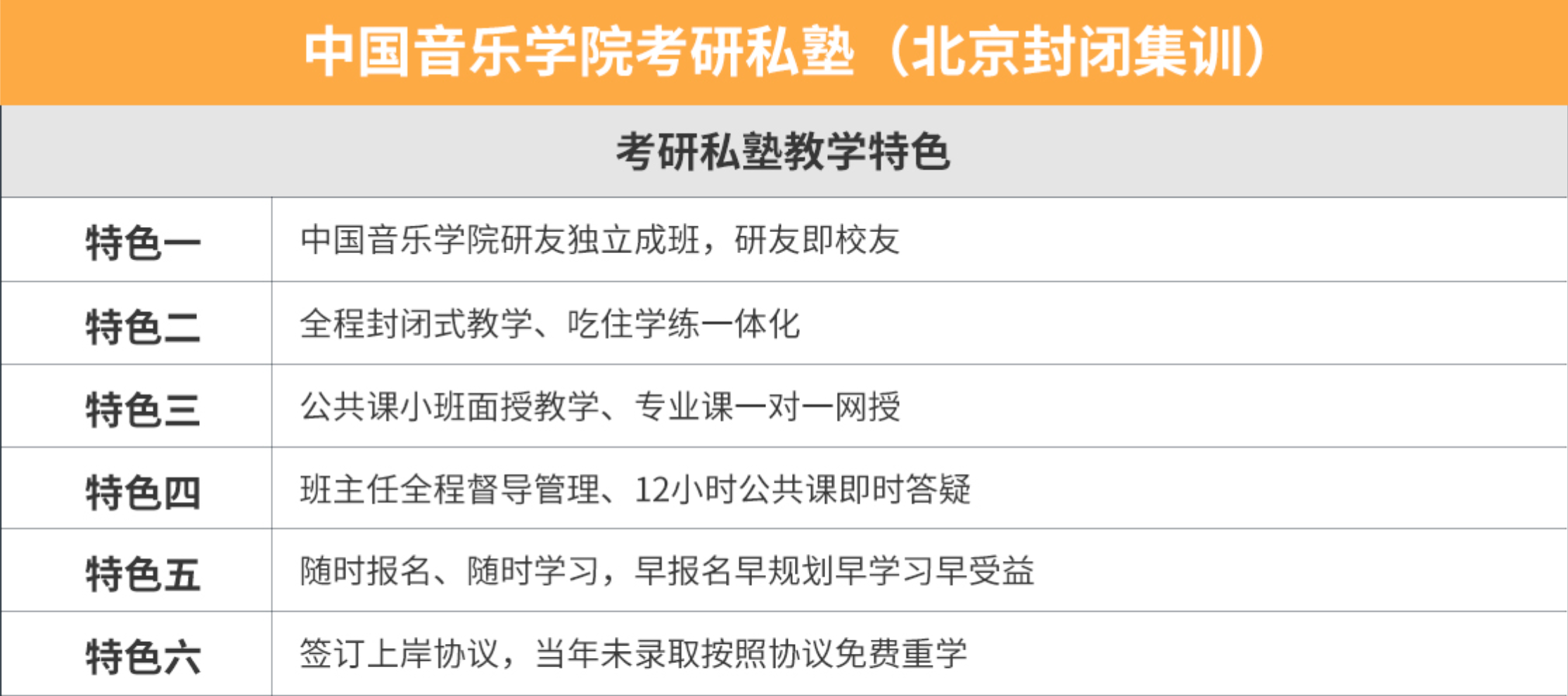 新祥旭考研机构开设有中国音乐学院考研私塾课程,中国音乐学院考研私塾为国音考研学子提供专属的封闭式集训学习环境,考研私塾全程封闭式教学、吃住学练一体化;公共课小班面授教学(PS:若公共课某科特别弱亦可单独再另咨一对一针对性补习)、专业课一对一面授或网授;班主任全程督导管理、公共课专业课即时免费答疑。考研学员随报随学,专业务实,真诚周到,助力上岸!