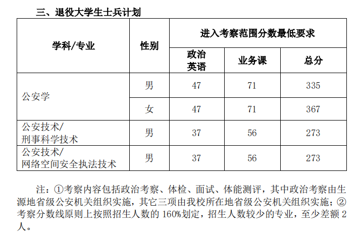 中国人民公安大学2024年硕士研究生招生进入考察范围分数线(公安学科)