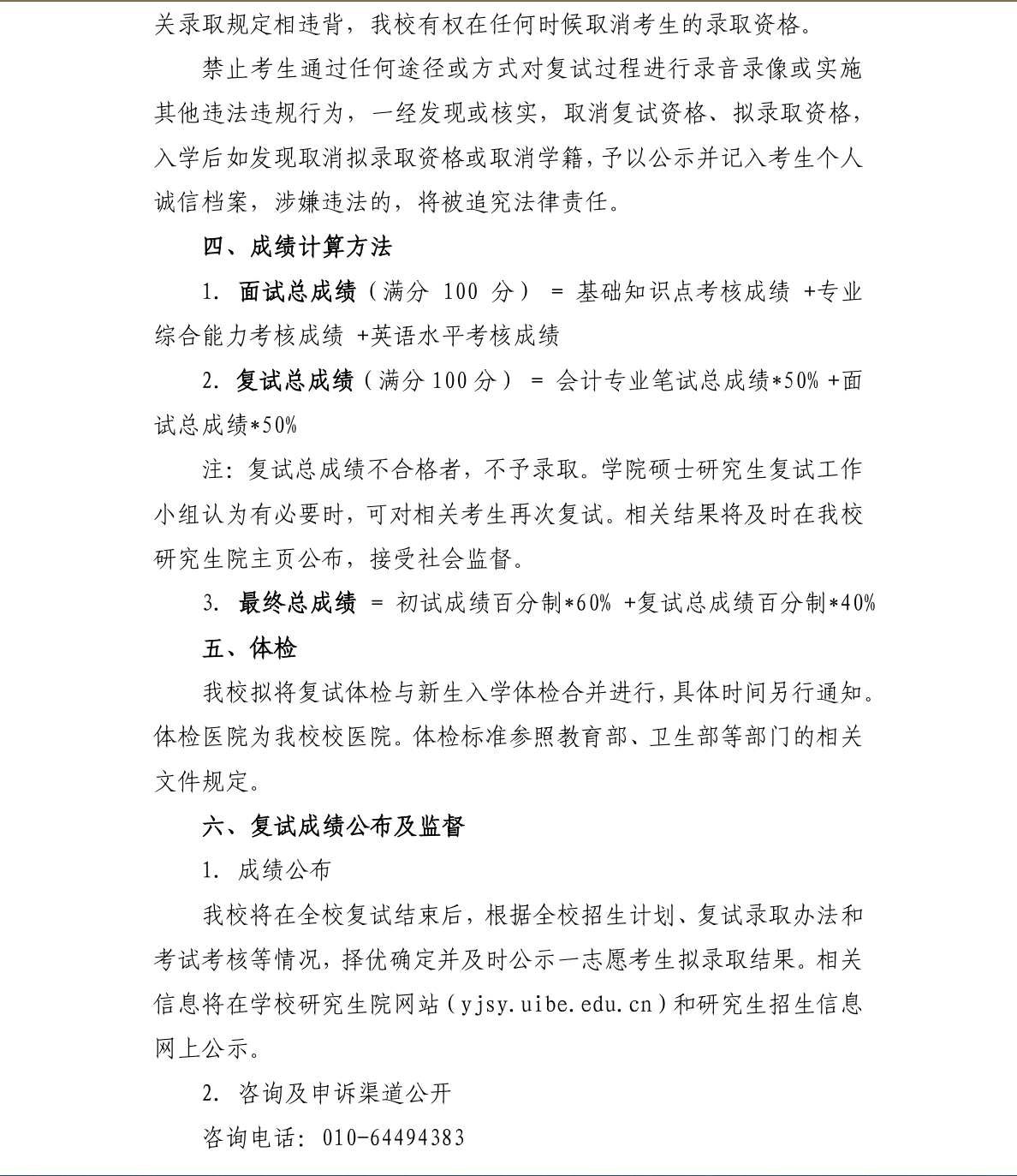 对外经济贸易大学国际商学院会计硕士(MPAcc)2024年硕士研究生招生考试复试方案