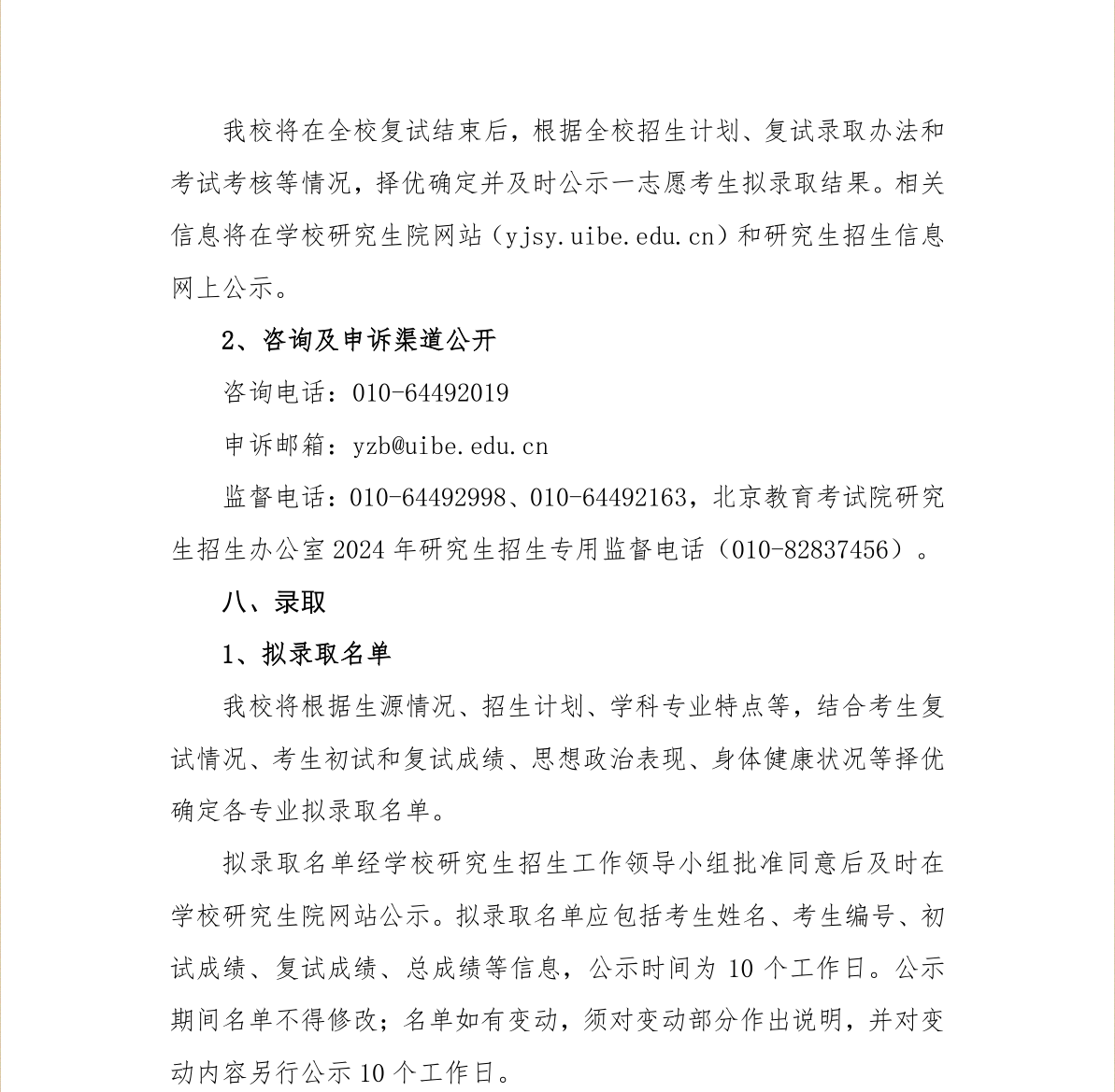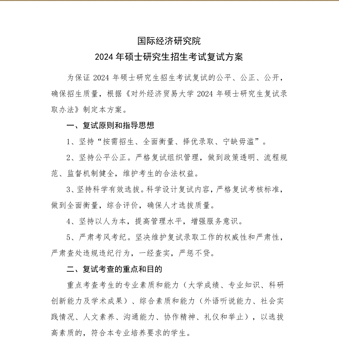 对外经济贸易大学国际经济研究院2024年硕士研究生招生考试复试方案