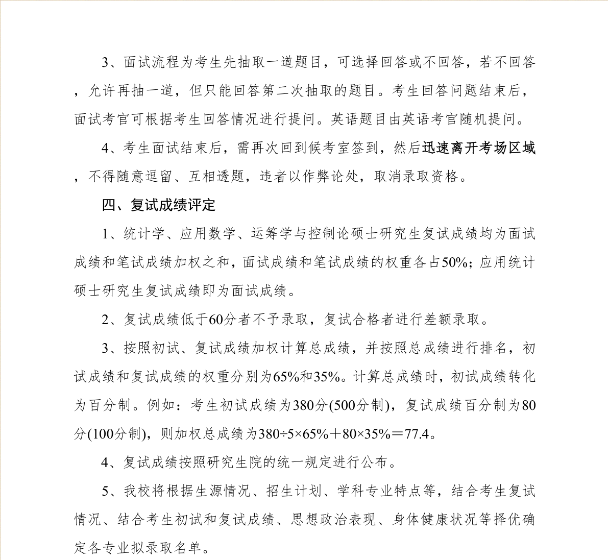 对外经济贸易大学统计学院2024年硕士研究生招生考试复试方案