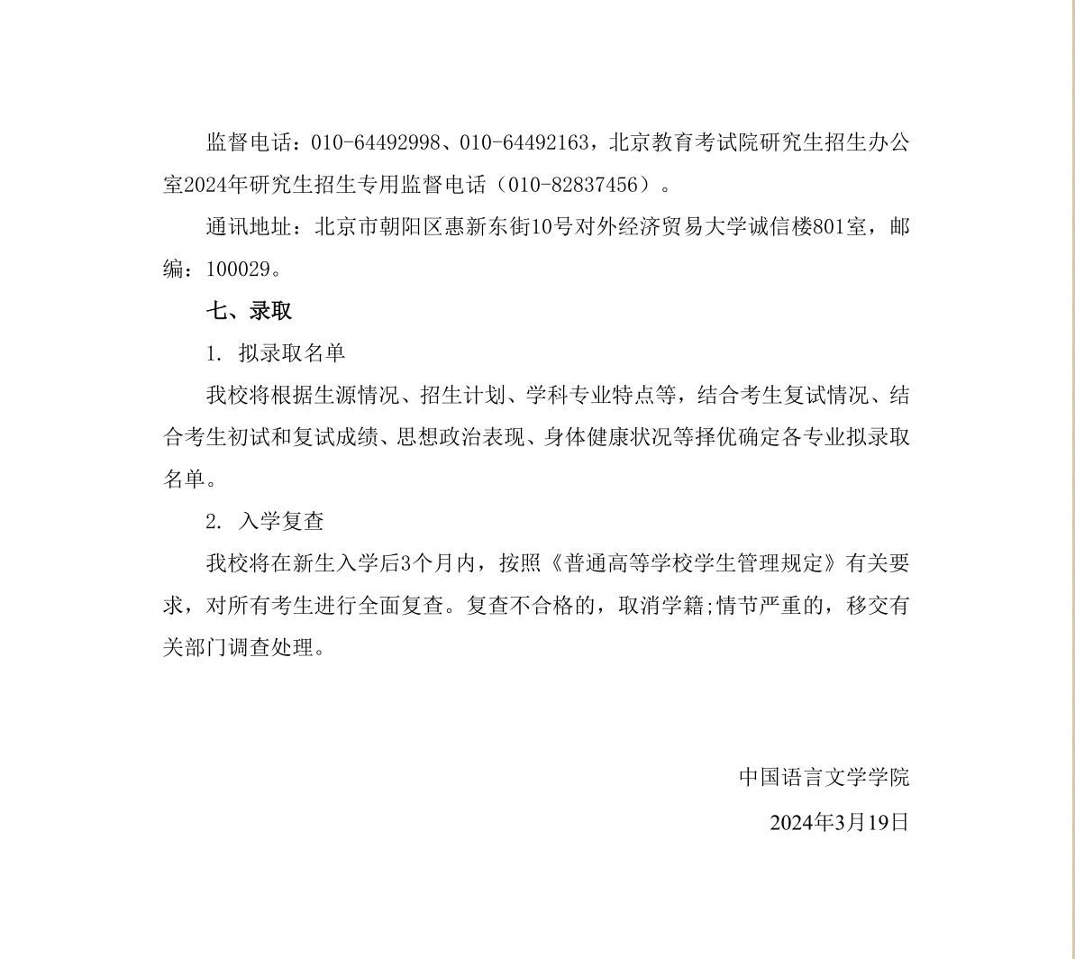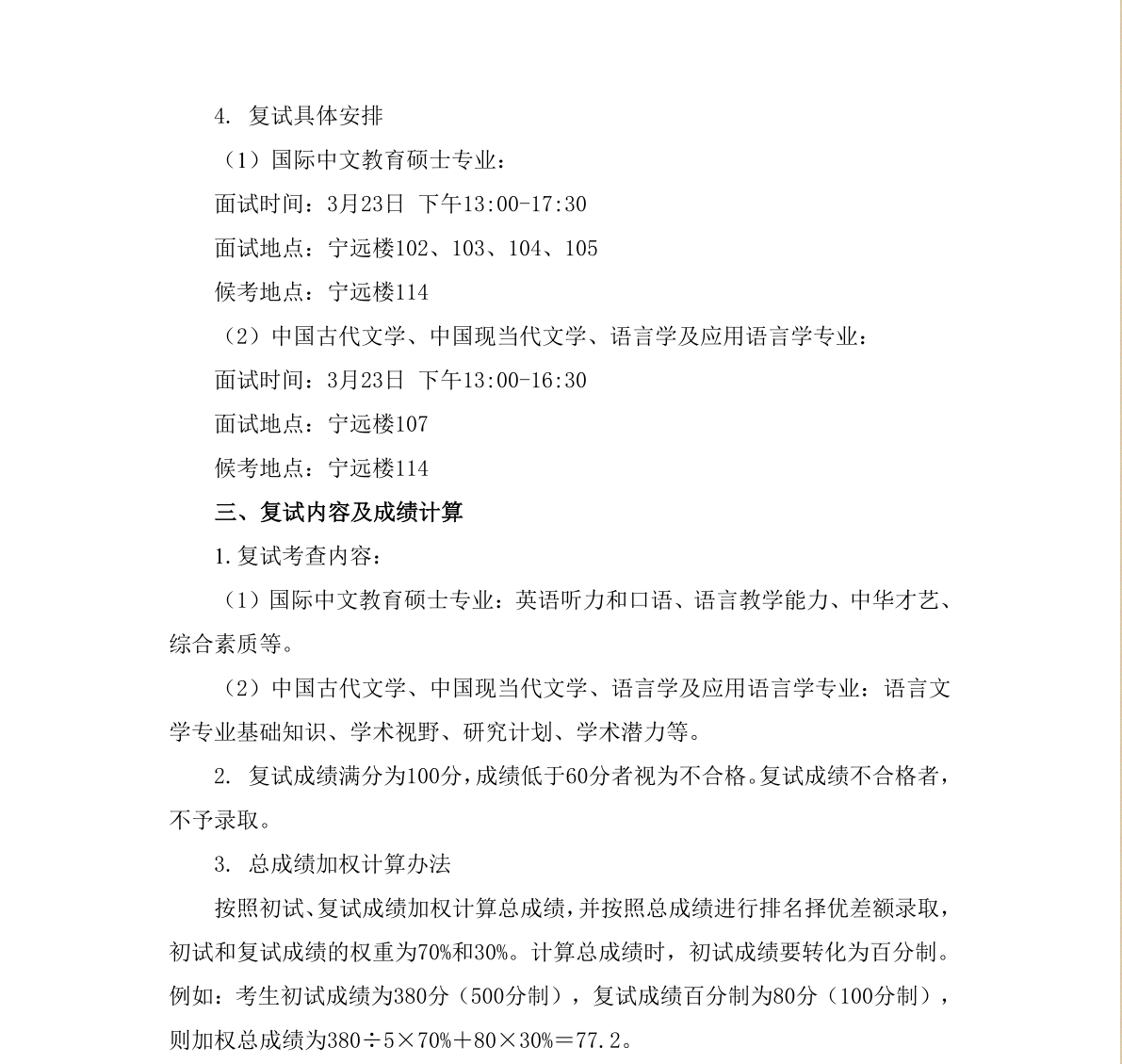 对外经济贸易大学中国语言文学学院2024年硕士研究生招生考试复试方案