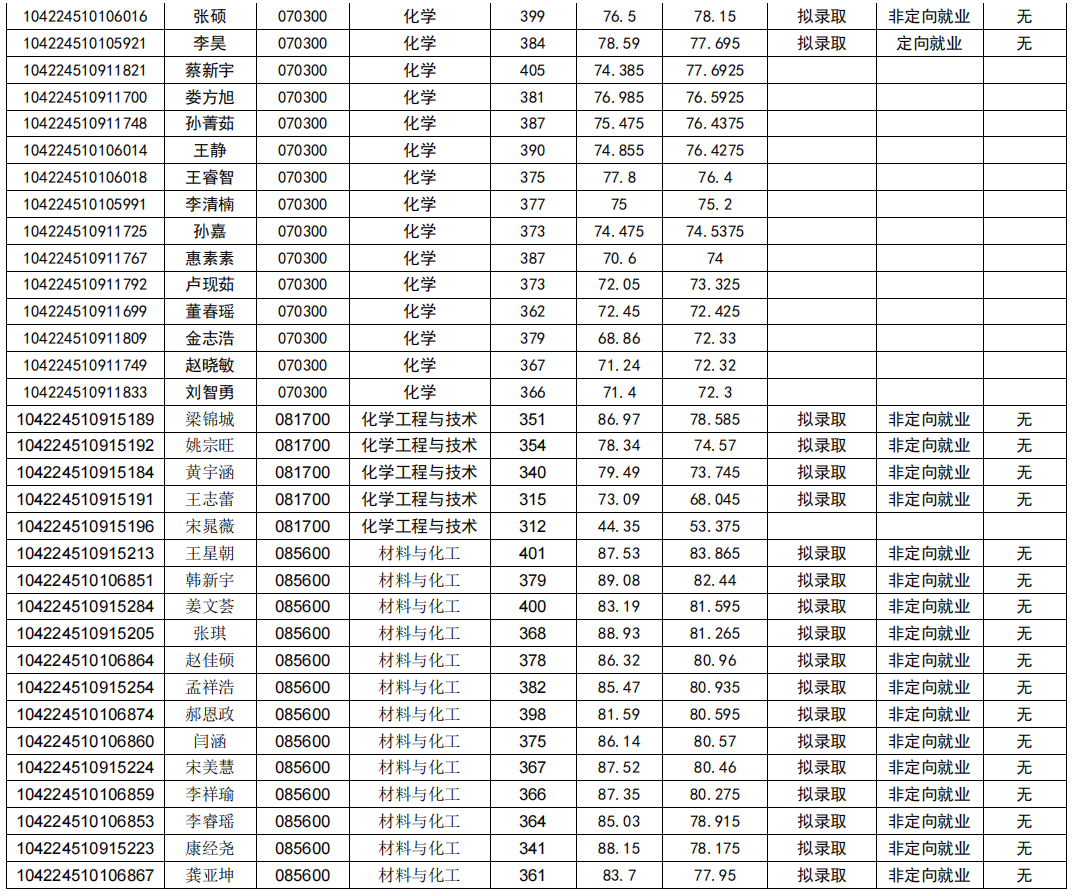 (四)拟录取名单