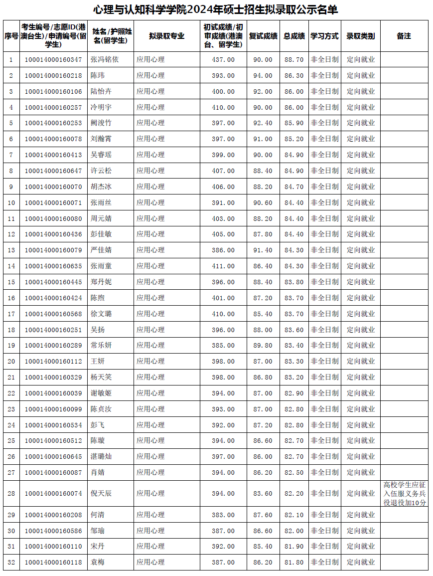 三、拟录取名单